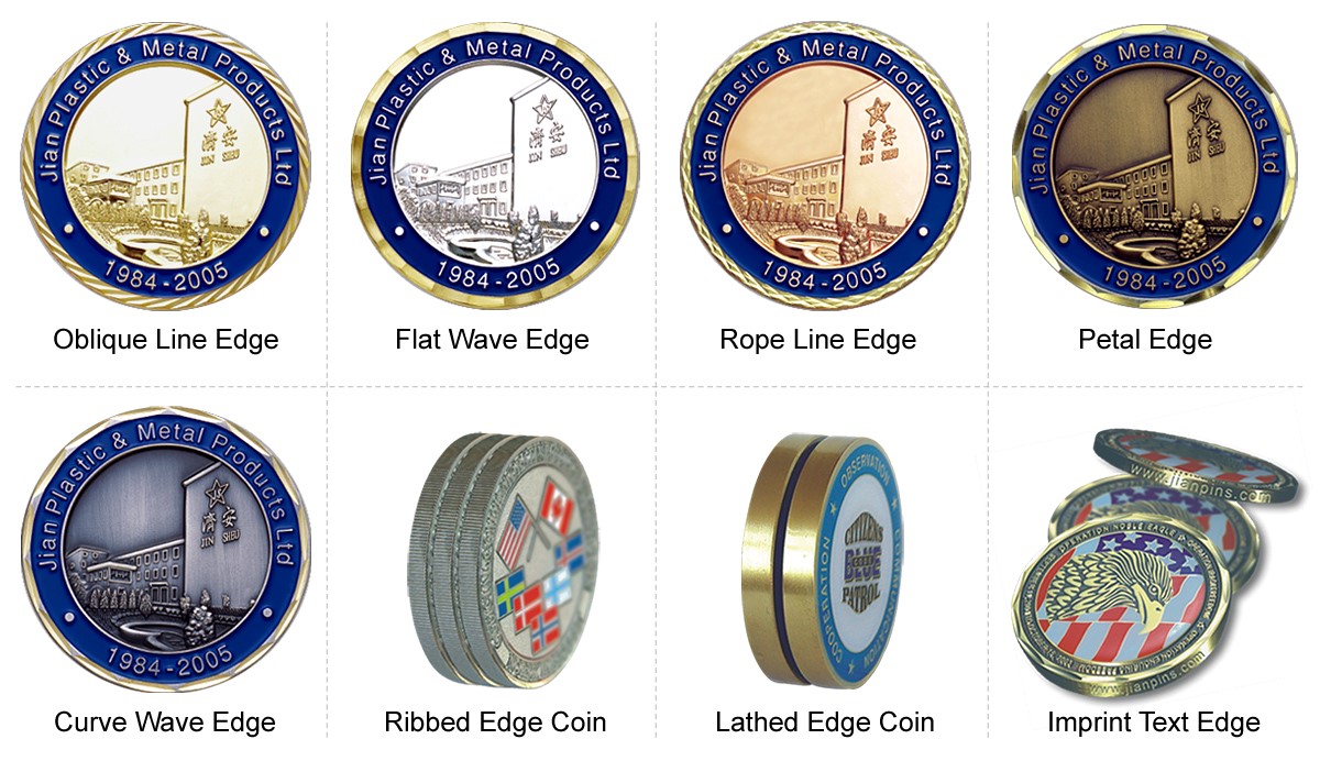 Custom coins with various diamond cut edges for choice.