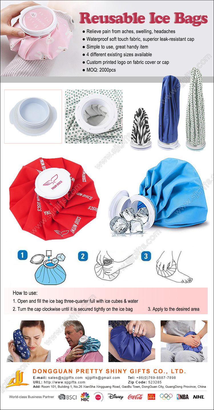 Made of waterproof soft touch fabric, polyester outsider, PVC coating inside which are condensation & ultraviolet resistant. We have 4 different existing sizes for your choosing from. The high quality aluminum ring and large PP cap opening make sure its superior leak resistant & allow easy filling of ice cubes. Very simple to use and just keeps a handy ice bag in your car, at home, working desk for grab-and-go comfort from pain.