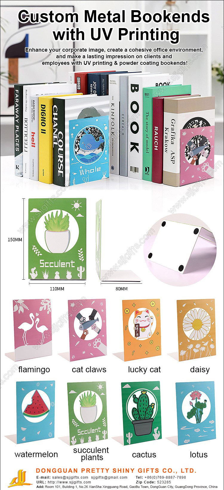 The possibilities for unique UV printed metal bookends design are endless. You can opt for a simple, minimalist design with a single color UV print, or go for a more elaborate, multi – colored pattern. We can create custom shaped metal bookends and apply UV printing to enhance their visual appeal.