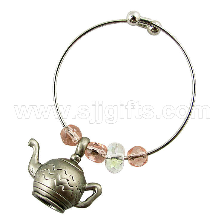 Wine charm is a good item suitable for decorating and identifying wine glasses no matter it is filled with wine or water. They are also perfect for many celebration occasions. The end user can use them no only on wine glass but also coffee cups, tea cups or any glass which has a gem, most available designs of Pretty Shiny are made by pewter because people want a nice 3D quality charm. Normally the size is small with a ring attached on charm, then some beads can put on the ring. The user can take it off to decorate other items like bag, cloth if they like, simple designs with or W/O color are also very popular.