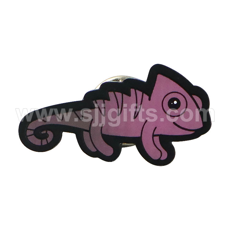 Heat sensitive lapel pins was normally made in bronze material, logo can be imitation hard enamel or with printing, if with printing then only single color is available and dark color is recommended. The color changes when temperature is higher than 33 degree. Looked at the dinosaur in the video, it’s dark grey at beginning when the temperature up to 33 degree then it changes to bright pink color. What a magic pin…You may be concerned about the ink. Don’t worry, all the ink/enamel that in the pins/badges is low lead. The MOQ is 300pcs per design. Contact us at sales@sjjgifts.com right now to create your heat sensitive lapel pin.