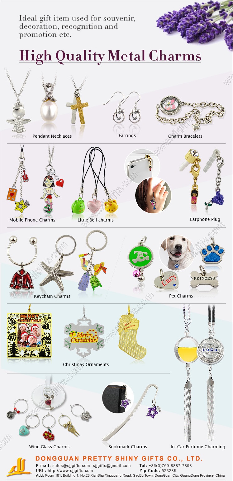 Want to know more about the charms? Please send your design ideas and size, quantity information to sales@sjjgifts.com, we can transfer your custom logos into excellent products.