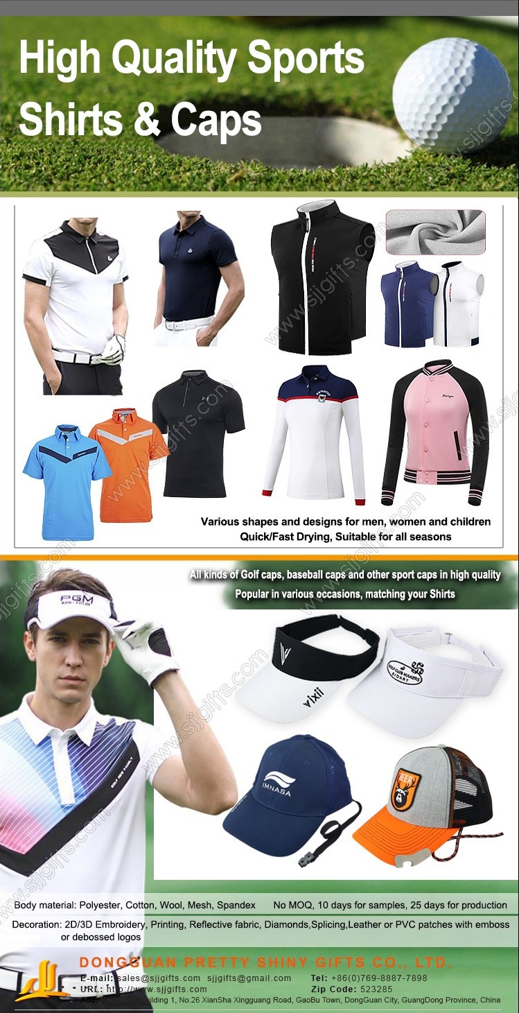 Sportswear contains a combination of different items. Except best range of stylish, comfortable to wear when exercising, golfing, playing football, gymnastics etc. is our ultimate goal. Available in double stitched collar pointed at the tips, loose double stitched sleeve cuffs, left breast pocket, 100% polyester or cotton & polyester combination of the two, various of material in solid color or yarn dyed stripe features in breathable, eco-friendly, quick drying, stretchy respectively. All kinds of golf caps, baseball caps and other sport caps in high quality are available. Body material include polyester, cotton, wool, mesh, spandex. The logo can be 2D/3D embroidery, printing, reflective fabric, diamonds, splicing, leather or PVC patches with emboss or debossed logos. Colors not only can match your shirts, but also popular in various occasions. Most importantly, the raw material can comply with various tests like burn test for 100% cotton, waterproof, color fastness and more.