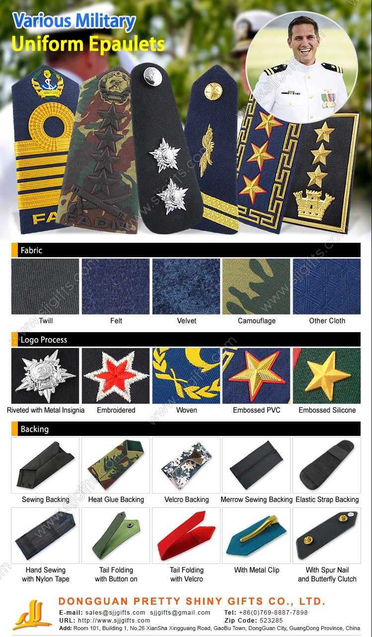Should you looking for a professional factory for customized shoulder epaulets or embroidery patches, please contact us at sales@sjjgifts.com so that we could quote to you immediately.