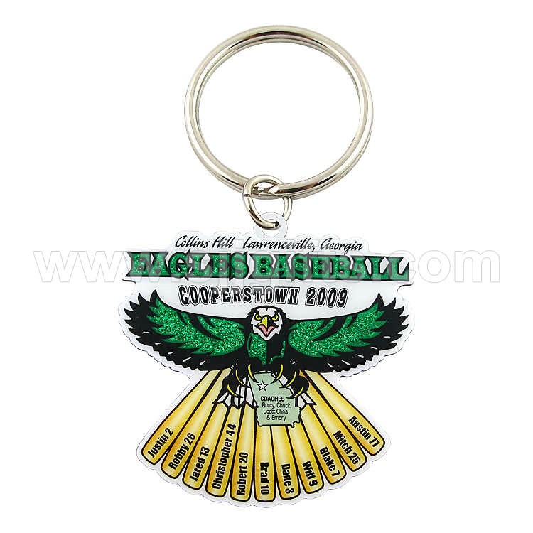 Printed Keychains offers the lowest price and fastest delivery, it’s a perfect choice for large promotional events and cost sensitive biddings. Printed process is an excellent method to show gradient color or photographic details without simplification, the printing Colors can go all the way to edges of your custom shape keychains, and no need of metal trim to separate colors. Silkscreen printing colors can match PMS chart well.