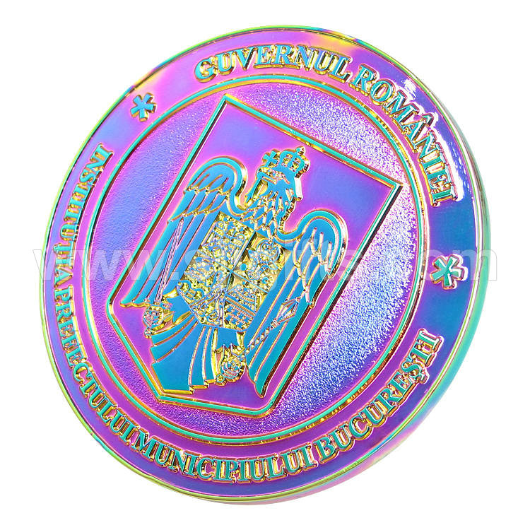 The rainbow effect is achieved by a process called anodizing. Metal badges are casted or stamped in a mold firstly, just like any other pins. Before any enamel is added, the metal pins are carefully cleaned and prepared for the anodizing process. A chemical solution is created, and the pins are submerged into it. A grounding wire is then attached to each pin, and an electrical charge is then passed through the metal with a wire. The chemical reaction with the electricity creates an amazing rainbow effect on the metal emblem. This process only needs to be done for a few seconds to change the metal’s color. The colors shift and change depending on how long the process is applied to the pin. Applying the electricity for even half a second more can drastically alter the metal’s color.