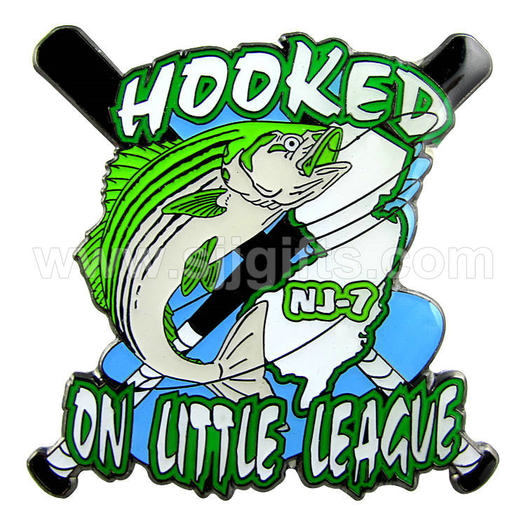 Stamped brass soft enamel pin is the most recognizable process for making lapel pins. It offers a phenomenal looking product for a price slightly less than the cloisonné or imitation hard enamel pins, while still have good quality, brilliant in color and provide an accurate detail of your design. Soft enamel colors are hand-filled to recessed area of the pins, and then baked at temperature of 160 degrees centigrade. You can choose to put a thin epoxy over the top of the badges and pins to keep the colors from fading and cracking, also have smooth surface of metal pins.
